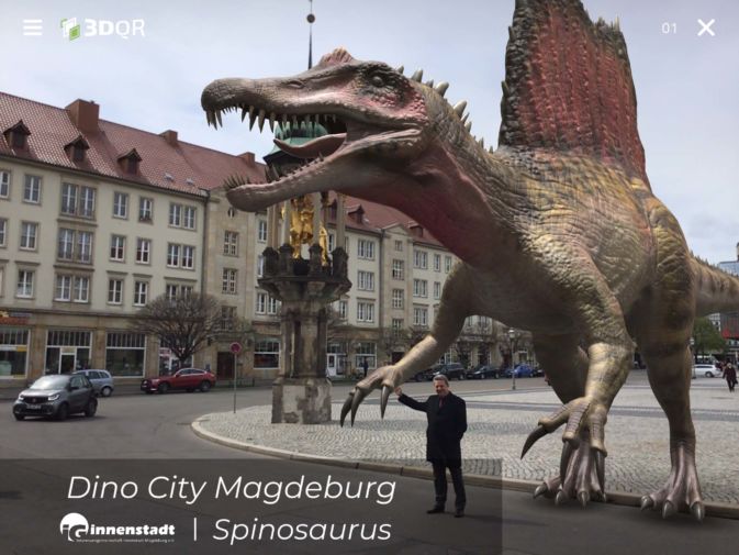Um gerade jetzt nach dem Ende der Lockdown-bedingten Geschäftsschließungen wieder Interesse an einem Bummel durch die Innenstadt zu wecken, hat die Interessengemeinschaft Innenstadt Magdeburg eine außergewöhnliche Kampagne gelauncht. Passantinnen und Passanten mit Smartphone oder Tablet haben die Möglichkeit, waschechte Dinos in Lebensgröße zu bestaunen – digital.